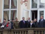 Většina návštěvníků vernisáže se poté zúčastnila manifestace na Staroměstském náměstí, kterou svými projevy z balkonu paláce Kinských zahájili předsedkyně KPV ČR Naděžda Kavalírová, premiér ČR Mirek Topolánek a primátor hl. m. Prahy Pavel Bém. V programu, jež uváděl Mgr. Daniel Herman, mohli účastníci vyslechnout mimo jiné také ukázky muklovské poezie. Symbolickou očistu místa provedl na závěr manifestace synodní senior Československé církve evangelické Joel Ruml.