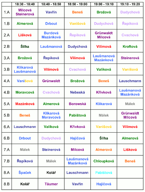 18:00 do 18:30 Setkání rodičů s třídními učiteli v kmenových učebnách.