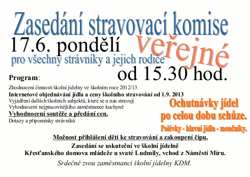 Veřejné zasedání stravovací komise v pondělí 17.6. od 15.30