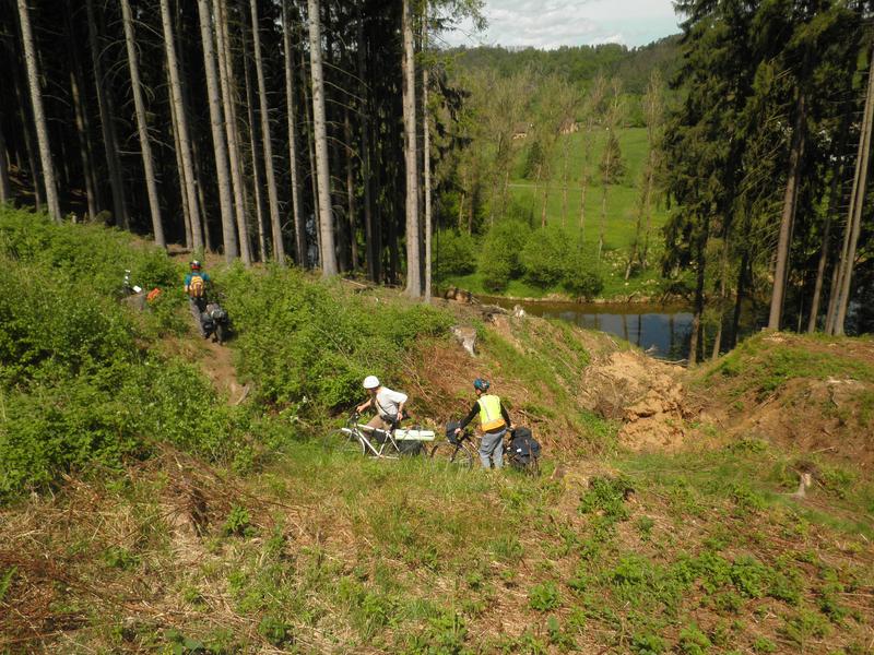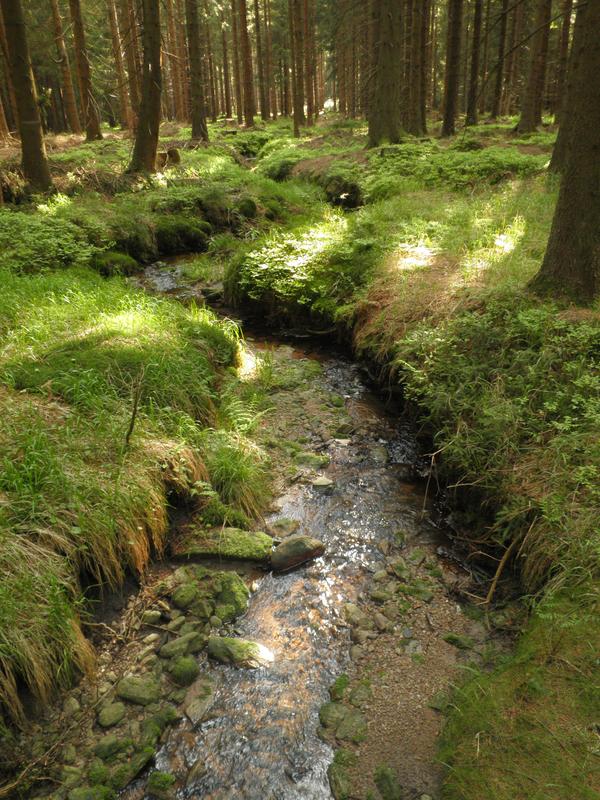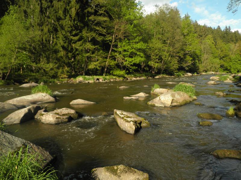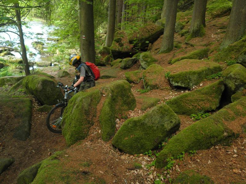 * několikrát adrenalin - červená tur.značka u řeky nebo nad ní - strmé svahy, příčné rokliny, kořeny, balvany
