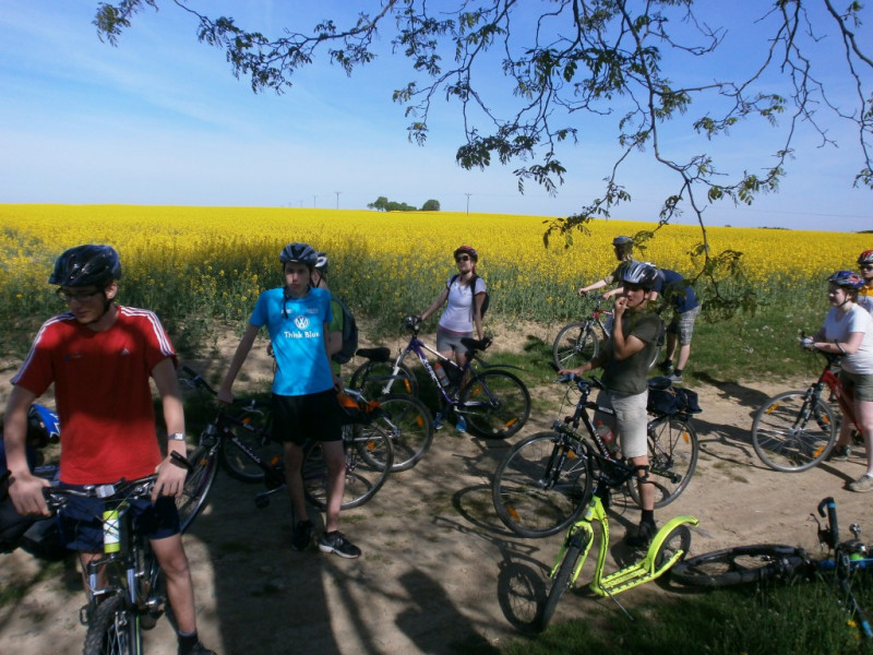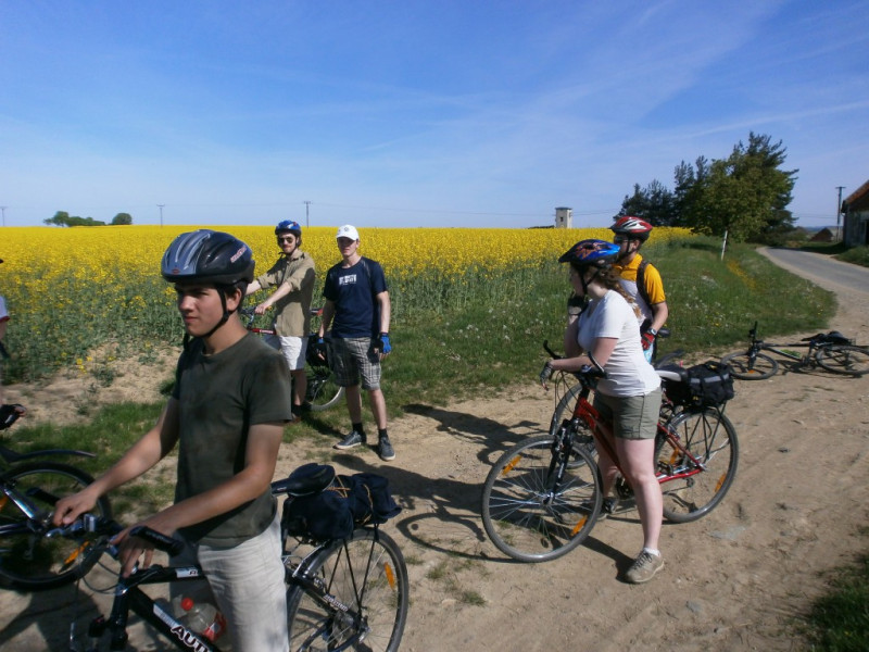 Po roční přestávce se opět konal sportovní kurz septim. Spíše septimy A, ze které jelo 19 studentů, ze septimy B jen 3. Strávili jsme krásný slunečný týden plný pohybu v jarní přírodě jižních Čech. Konkrétně v Dobronicích u Tábora ve středisku lékařské fakulty UK, kam jezdíme už od roku1998. Po povodních v roce 2002 středisko zrekonstruovali a vybavili hřišti na volejbal, beach volejbal, košíkovou, nohejbal, tenis, soft, fotbal – všechny tyto hry jsme si moc užili. A k tomu ještě orientační běh v přilehlém lese a výlety na kolech (dva půldenní kolem 40 km a jeden celodenní do Temelína v délce 82 km).