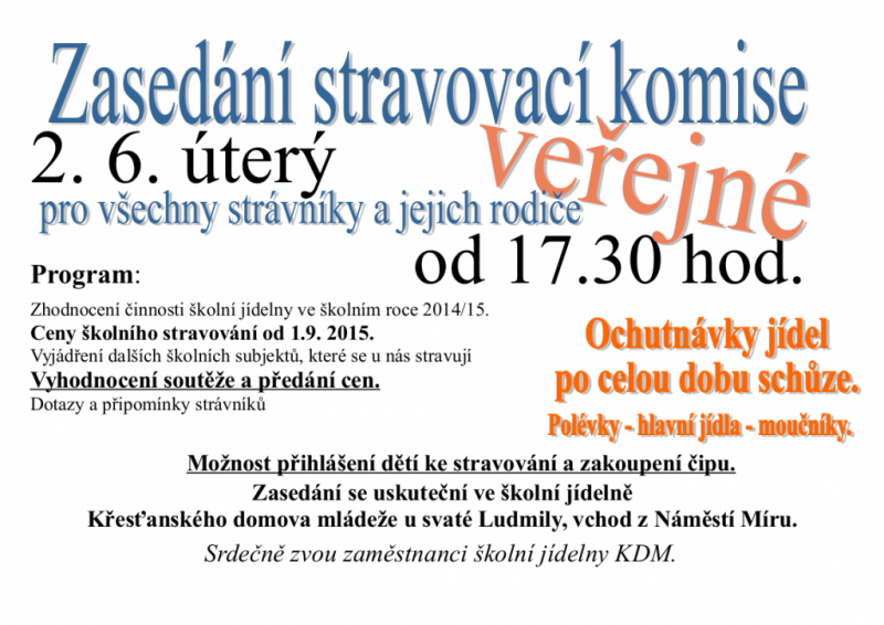 Veřejné zasedání stravovací komise 2. 6. 2015