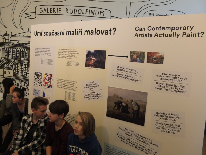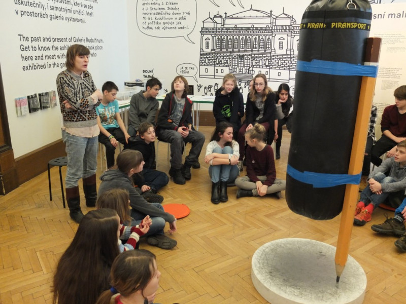 Dne 9. února se sekunda A vydala pod velením paní profesorky Peterkové do Rudolfina. Plán byl takový: Užít si workshop s kurátory v novém Rudolfinském Artparku a pokud zbude čas, podívat se i na výstavu německého fotografa, Jürgena Tellera. Čas zbyl. Takže se objevil nápad zajít ještě do galerie Václava Špály, ale touha po obědě byla silnější. Co se Artparku týče, jsou to dvě místnosti velmi zábavně zpracované, vydesignovaných tak, aby zaujaly. Náš workshop se zaměřoval na bizarní druhy umění, jako třeba světově proslulý dadaismus a jeho pisoár, jablko na podstavci, či věšák, potom také na jednotlivé proudy umění 20. století, například happening, body art, instalace a podobně. To jsme nakonec měli možnost vyzkoušet si na vlastí kůži. Třetí část se věnovala krizi malířů, kteří jako velkou konkurenci vnímali fotoaparát, jenž si velmi jistě produpával cestu uměním. Veškerým programem nás provázela paní kurátorka. První částí workshopu byl pracovní list, druhou ztvárnění již zmíněných druhů umění. Ve skupinkách jsme si vylosovali zadání a v této partě jsme na něm i pracovali. Skvěle se podařila vystihnout charakteristika body artu jednomu dívčímu týmu, který dokázal, že v tomto druhu výtvarnictví nejde jen o malování na tělo a perfektně to demonstroval na "trojhlavém copu". Měl by být na fotkách. Vzhledem k tomu, že nám stále zbývalo mnoho času, odebrali jsme se do sálu, ve kterém začínala Tellerova výstava. Od kurátora jsme se dozvěděli dost zajímavých věcí, jako třeba příběhy jednotlivých fotek, příběh osla, jak se tato výstava sestavovala... Některé fotky mi moc umělecké nepřipadaly, spíše jako z rodinného alba a jiné byly umělecké až moc (někteří mí spolužáci byli pěkně otřesení). A pak talíře. Teller miluje talíře a tiskne na ně své fotografie, protože, jak některým může být zřejmé, v překladu i on je talíř. Teller. Každopádně na výstavu je osobám mladším patnácti let vstup zpřístupněn zadarmo a tak si do Rudolfina kdykoliv můžete zajet.
