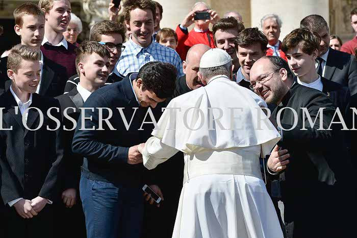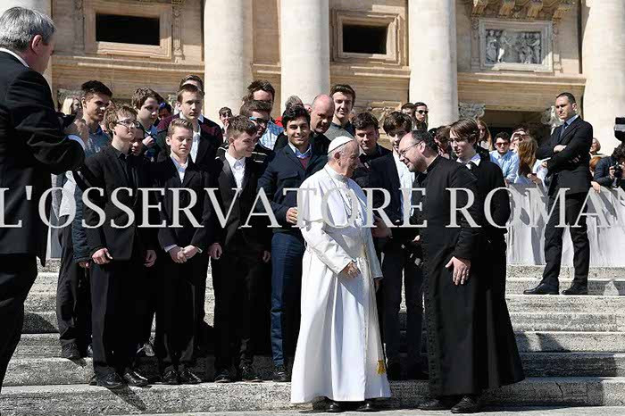 Ve středu jsme se díky „Mons.“ Donu Vítovi a několika hudebníkům z našich řad dostali v rámci papežské audience k papeži tak blízko, jak jen to šlo. Chlapci při příjezdu svatého otce zahráli fanfáry od J. I. Linka. Na závěr audience k nám papež přišel a ptal se, jak se má pan kardinál Vlk (R. I.P.) a vzkazoval, aby vydržel vlkem (tedy silným) až do konce. Prosil nás také o modlitbu, zvláště nás vyzval, abychom se modlili růženec. Bylo to ohromně milé, viděli jsme, jak je zmožen svým úřadem, přesto nám věnoval část svého času. Těch pár minut asi nikdo z nás nezapomene.