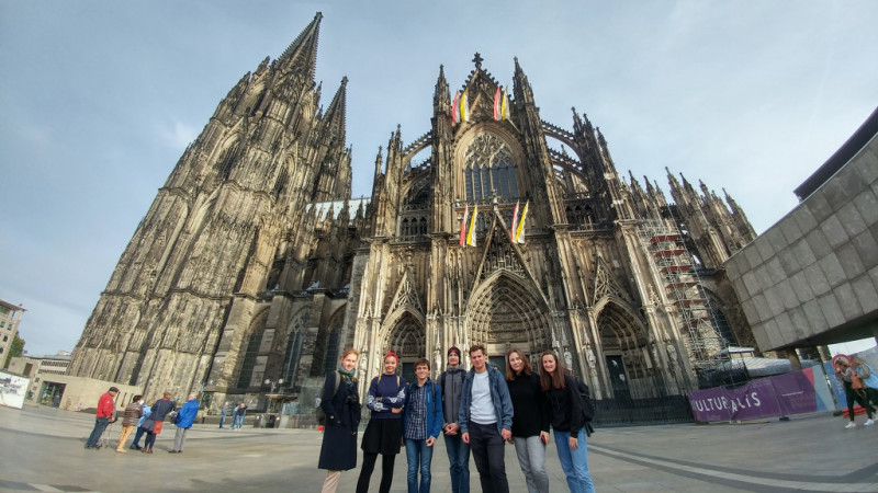 Úterní program sestával z prohlídky samotného města, a především naší hostitelské školy – tedy Erzbischöfliches Gymnasium St. Angela. Návštěva byla spojena i s oficiálním přijetím na radnici od paní starostky Sabine Preiser‑Marian. V šest hodin večer jsme poté i s německým osazenstvem odjeli do Kolína na klavírní koncert v tamější proslulé filharmonii. Umělcem byl Alexander Gavrylyuk a společně jsme si v podzemní stavbě vyslechli výběr z romantického repertoáru. Ve středu jsme se zúčastnili projektového vyučování.