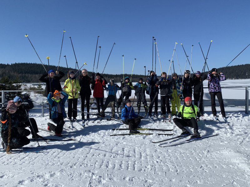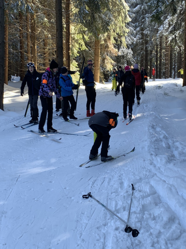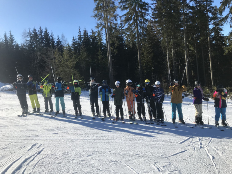Na přelomu února a března se sekundy A i B vypravily na týden do Jizerských hor, a to konkrétně do ubytovny Semerink v Janově nad Nisou. P. profesor Žváček objednal vynikající počasí, protože první tři dny probíhaly za neustálého sněžení a po zbytek týdne svítilo sluníčko a nebylo vidět ani mraku. Ideální stav pro lyžování potvrdilo i konstatování místních pamětníků, kteří se shodli na tom, že takto dobré podmínky nebyly ani minulou sezonu. Program startoval v neděli, kdy jsme objevovali krásy místního okolí a poté navštívili kostel v Horním Maxově. Lyžařský výcvik probíhal v pondělí a úterý pro začátečníky na Severáku, a pro pokročilejší v areálu Tanvaldský Špičák. Středa byla označena jako odpočinkový den, a tak byla možnost si vybrat buď z vycházky, a nebo z běžkování. Obě varianty za skvělého počasí sklidily úspěch. Vycházkový tým navštívil rozhlednu Královku, zatímco tým běžkařský zvolil cestu k vodní nádrži Josefův důl, která byla poněkud náročnější a delší, ale všichni členové se semkli a společně dorazily zpět v rekordním čase. Poslední dva dny probíhal program opět v obou lyžařských střediscích a navíc na Tanvaldu se konaly závody v obřím slalomu, takže jsme se mohli na vlastní oči přiučit různé techniky a detaily od mezinárodních profesionálů. Celý týden výcviku byl doprovázen bohatým doprovodným programem se spoustou her a nakonec i diskotékou s rozmanitým playlistem, který se dle studentů "dal poslouchat." Jako závěr lze použít zpětnou vazbu studentek 2.B: "V ubytovně dobře vařili a kuchaři byli moc milí, takže jsme netrpěli hlady. Výcvik a program jsme si moc užili, jen škoda, že diskotéka byla tak krátká. Lyžák měl menší nevýhody, ale i přesto se nám velmi líbil a chtěli bychom se zůčastnit dalších podobných akcí!"
