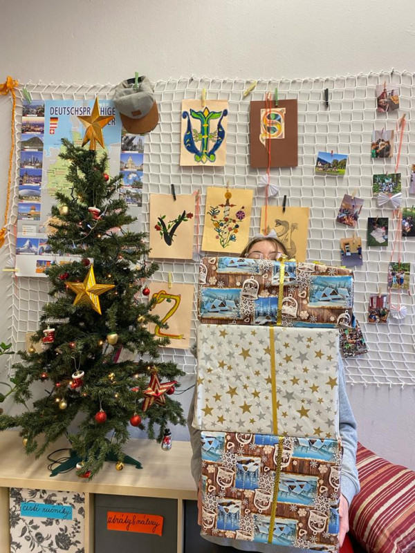 Každý z nás do školy nanosil předměty, které darujeme. Jednalo se o kosmetiku, školní potřeby, hry, veselé ponožky apod. Později na třídnické hodině jsme pak dárky pěkně zabalili, vytvořili přáníčka a odnesli jsme je na sběrné místo.