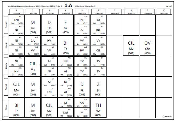 Rozvrh byl zveřejněn v systému Bakaláři. Před začátkem školního roku dojde ještě k drobným změnám (přidělení učeben apod.), ale v zásadě je možné s ním takto počítat.